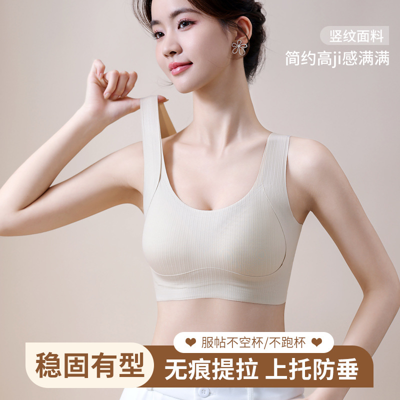 綿一体式ラテックス綿固定胸パッド運動防振集上托文胸女子学生が胸を拭く女性