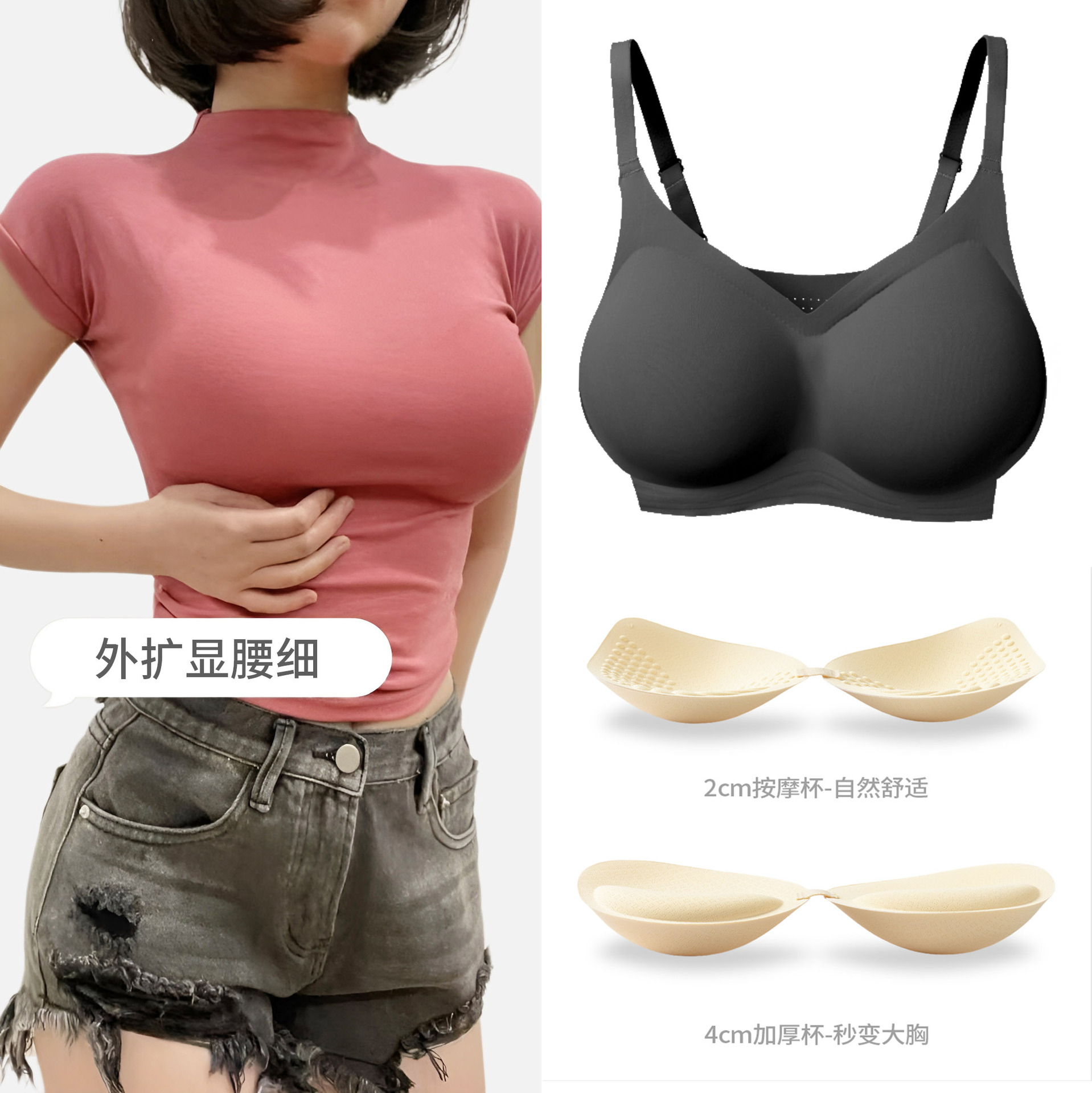 防凸点ゼリー芯兎耳水晶杯下着女性無鋼輪大胸小レースセクシー超薄ブラジャー