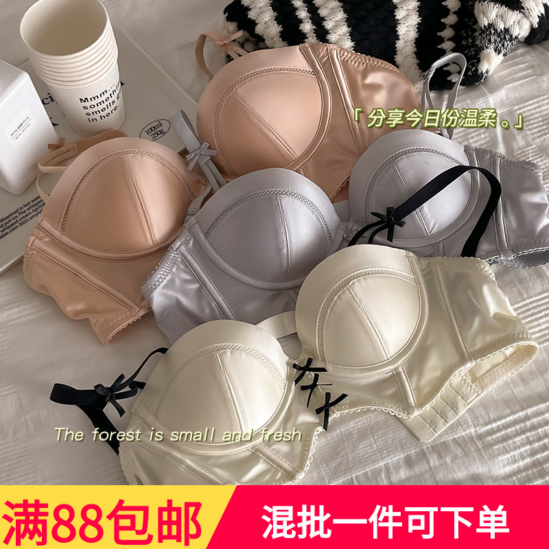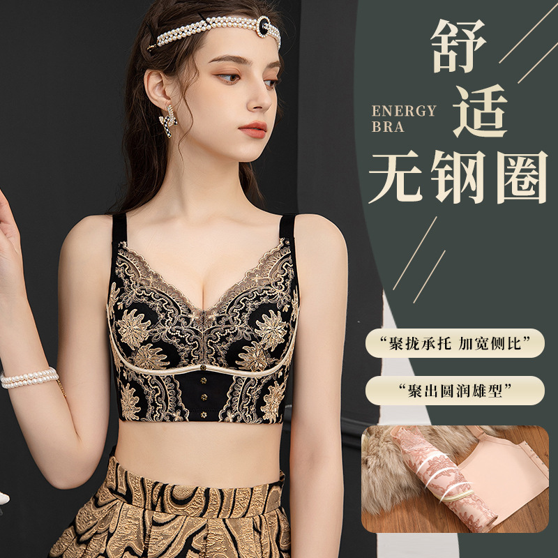 佳之純泡芙フレンチレトロなサテンの下着の女性の胸が集まって滑り止めのないスチールリングの副乳文ブラジャーがあります。
