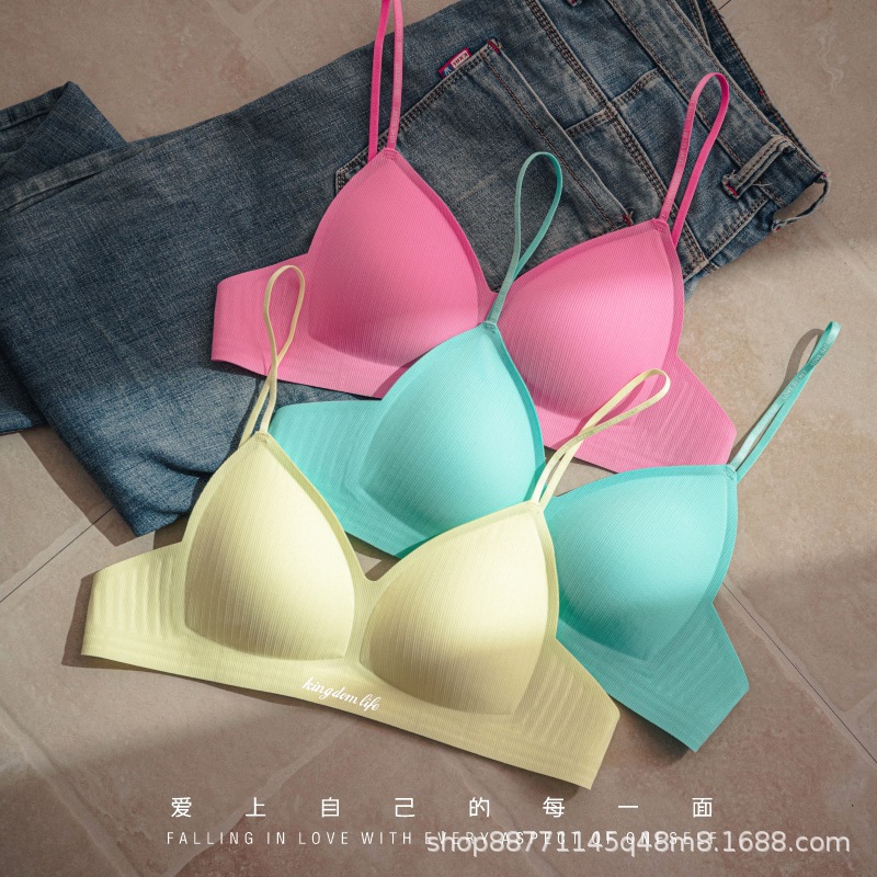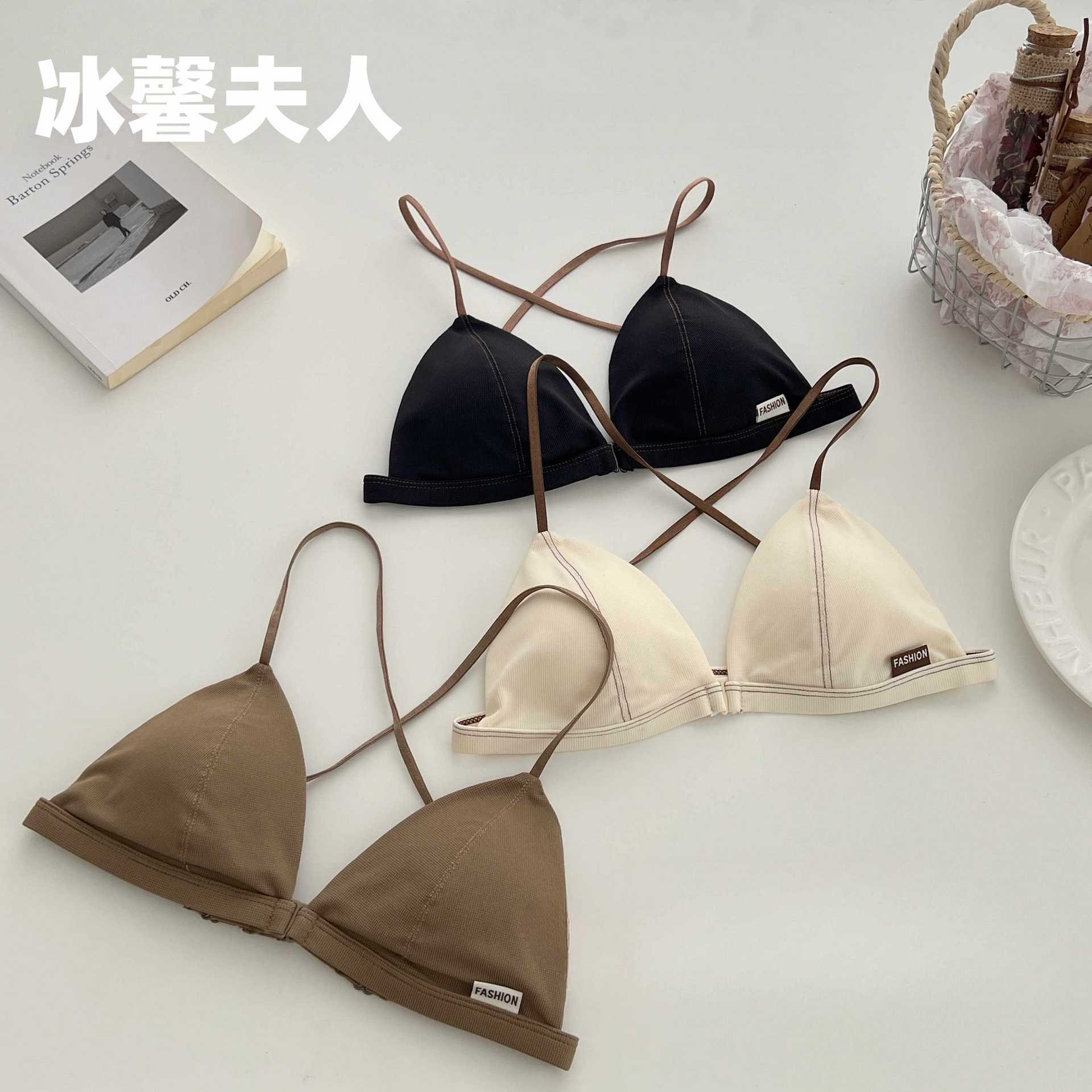 コントラストのあるデザインのフレンチトライアングルカップ、薄くてセクシー、シームレスなフロントボタン、美しく背中が集まり、通気性があり快適な小さなインナー