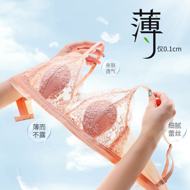 純粋な欲感の薄いタイプのフランスの下着の夏の薄い裸感の通気性のレースのスチールリングのないブラジャーの大きい胸は小さいスーツを現します。