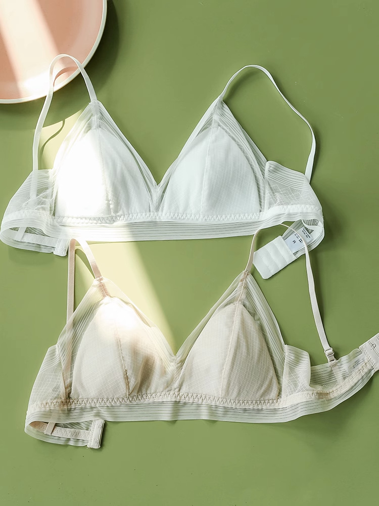 フランスの下着の女性の夏の薄いタイプの顕胸の小さい鋼鉄の輪の薄いセクシーな通気性の小さい胸の平胸の三角の杯のブラジャー