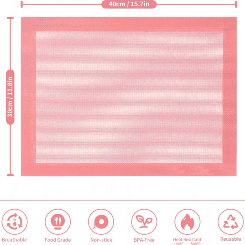 ベーキングマット ピンク 中空ベーキングマット シリコンベーキングマット ノンスティック グラスファイバーメッシュ 通気孔付き 中空ベーキングマット ベーキングトレイマット