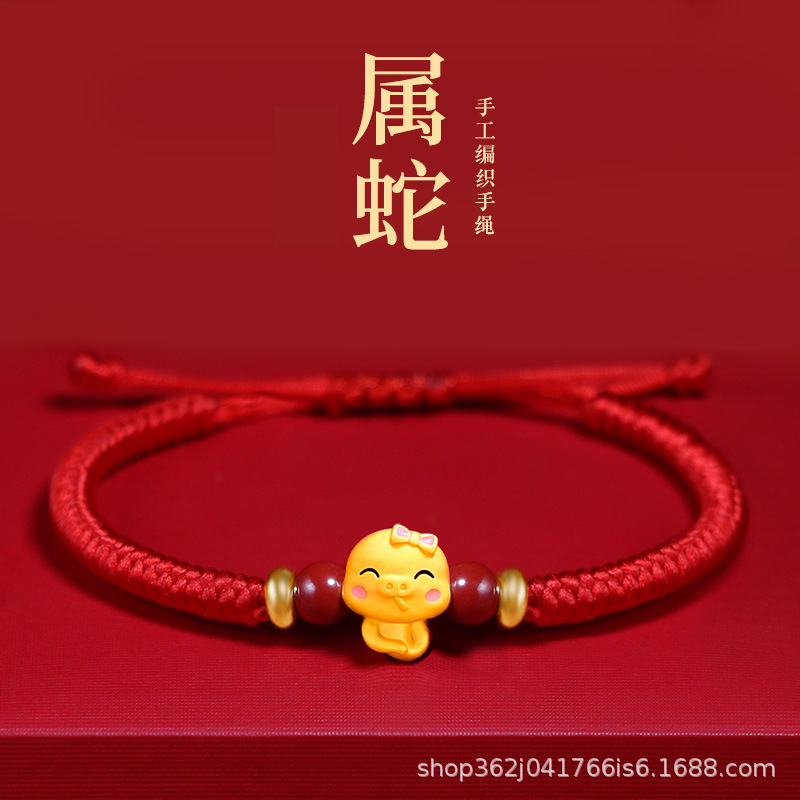 新作蛇年十二支干支本命年赤い紐ブレスレット純手編み漫画風干支龍蛇ギフト卸売