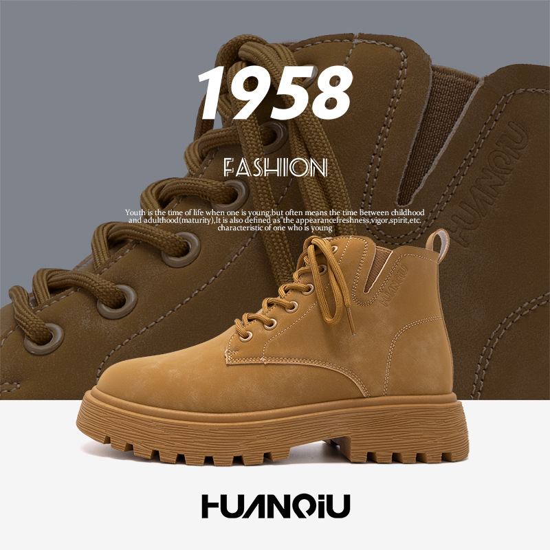 レトロなマーティンブーツ男性2024秋のショートブーツのトレンドは、大黄ブーツの英倫風の厚い底の耐摩耗性ワークブーツに合わせています