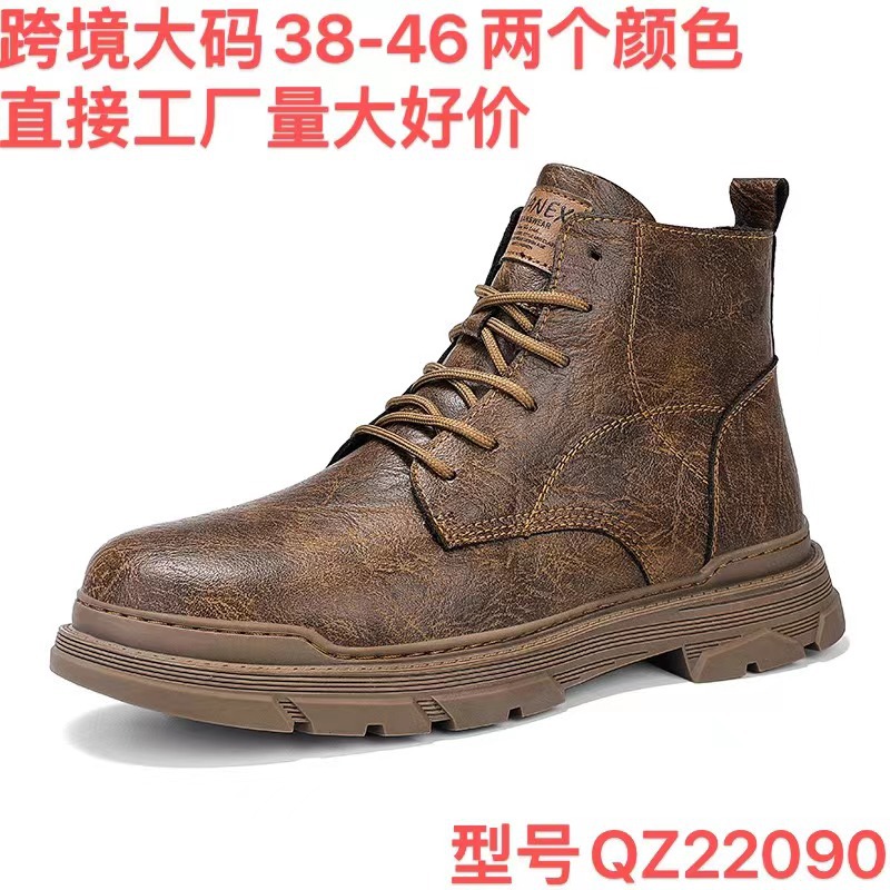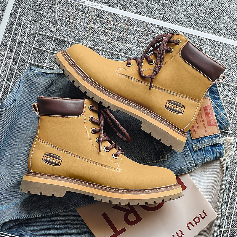 2023年秋冬新作男工装靴ショートブーツ英倫風厚い底中筒大黄靴カップルのマーティンブーツ