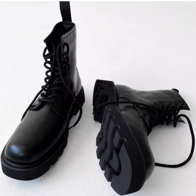 Ins英倫風個性角頭馬丁靴男潮本革側ファスナー厚い底中邦機関車靴ハイブーツ