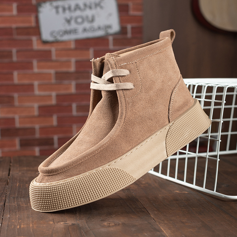 メーカー直供ヨーロッパ駅エアマット馬丁靴男本革ベルベット高助ショートブーツ英倫風厚い底中助靴