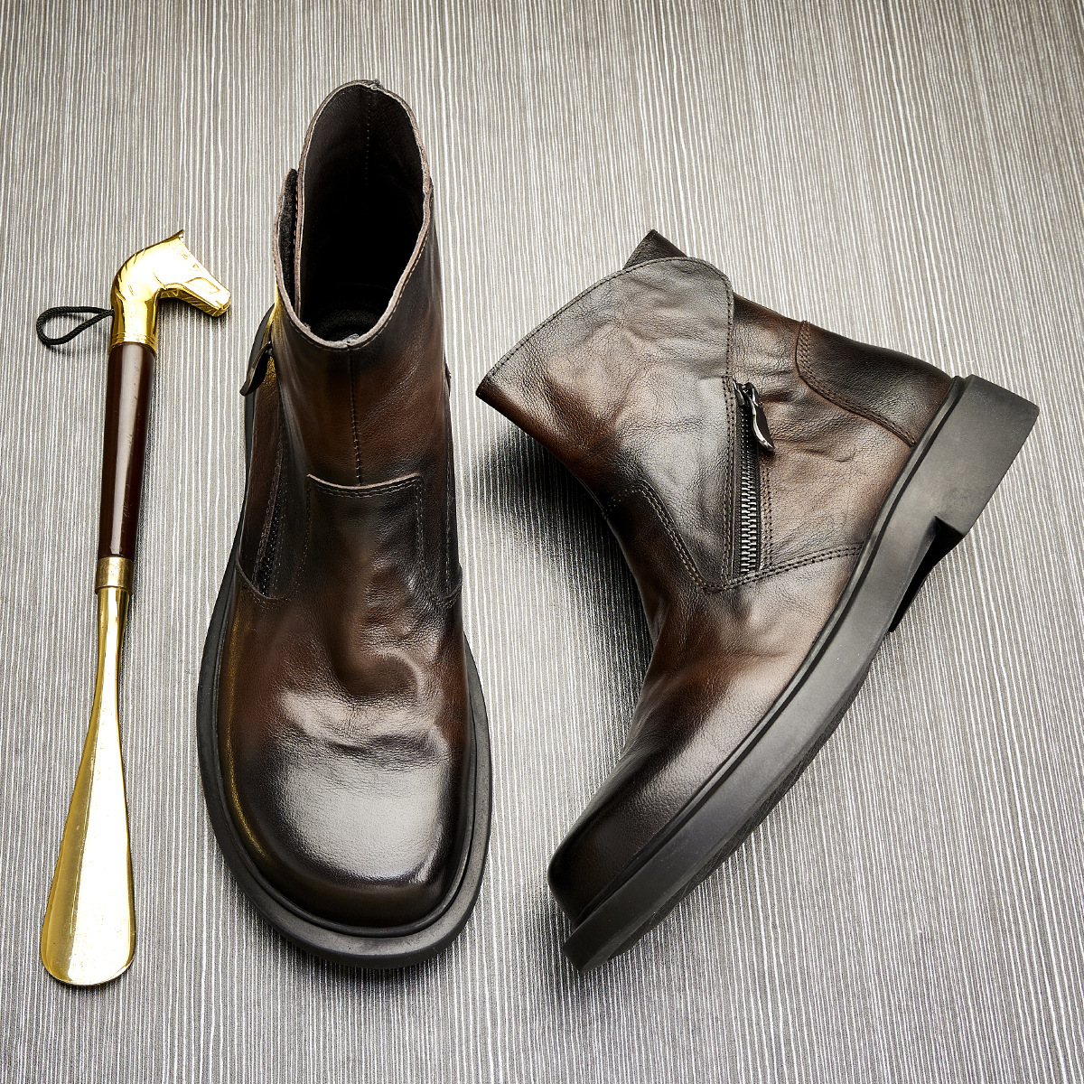 男性用ブーツ韓系角頭革靴英倫マーティンブーツカジュアル革靴チェルシー89758-r
