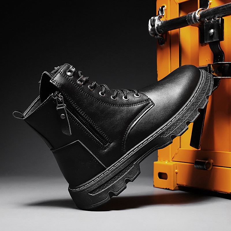 サイドジッパー マーティンブーツ メンズ ブラックブーツ 厚底 ハイカット カジュアル 万能 バイクブーツ 66648-Z