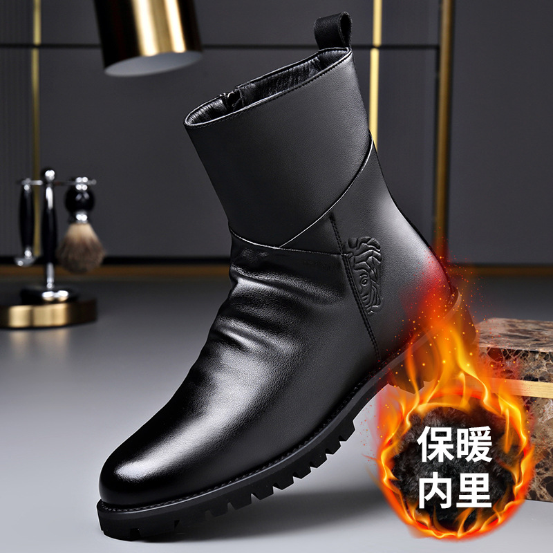 冬のベルベット保温マーティンブーツビジネス正装チェルシーブーツ男高組英倫側ファスナー大サイズショートブーツ