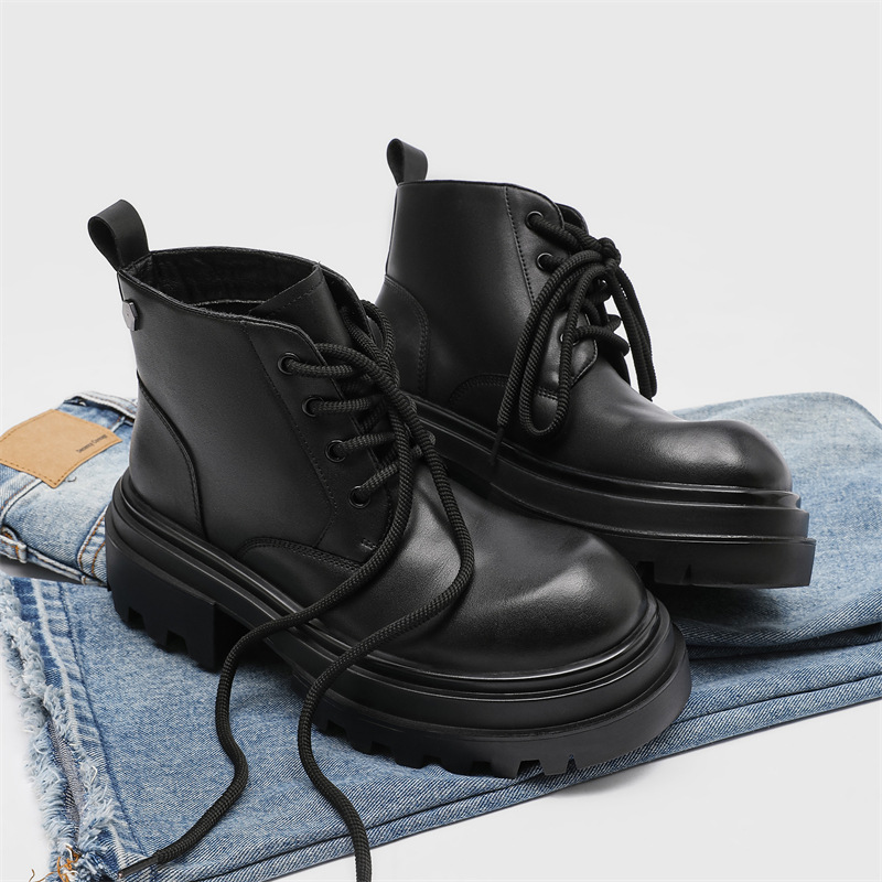 中帮馬丁靴男2024新型本革男靴頭層牛革厚い底工装靴英倫風ショートブーツ