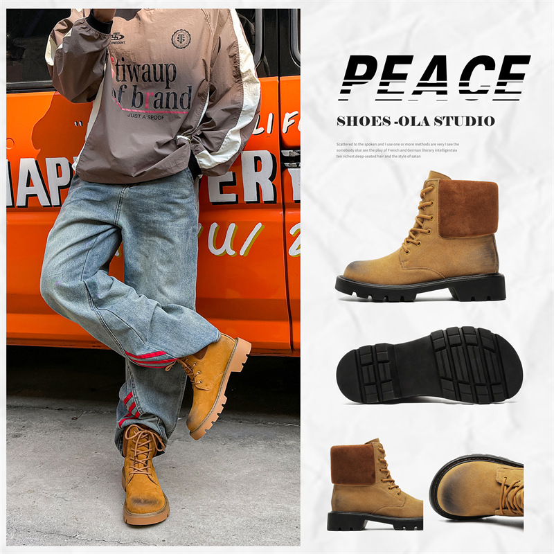 2024秋冬に起爆したマーティンブーツ士英倫風がレトロでかっこいいファッションを手伝って、男性の保温工装靴を手に入れた