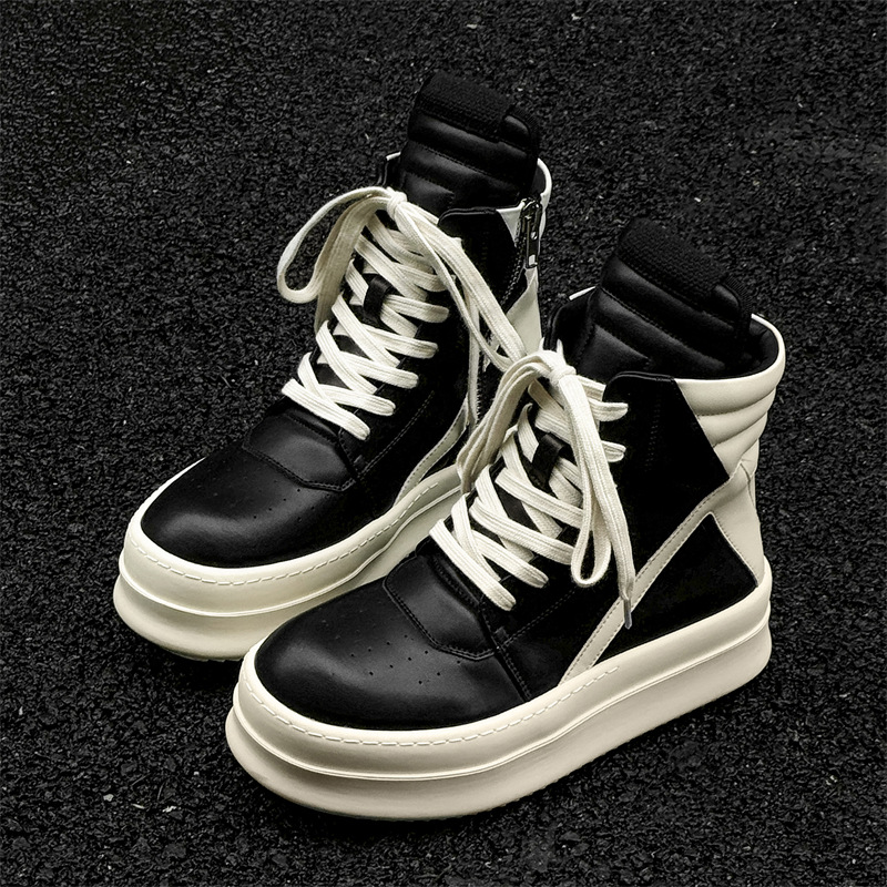 2024新型の厚い底の逆の三角の高い靴の男性の本革の高くなる板の靴の女性の四季の百合のカジュアルなショートブーツの潮