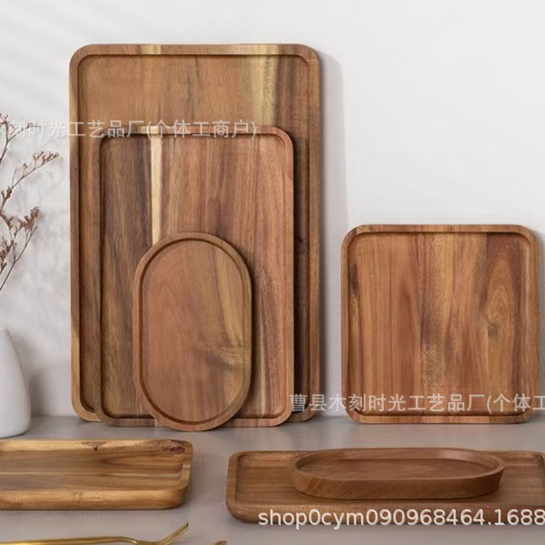 木目角型茶皿家庭用スナック収納トレー業務用喫茶店アフタヌーンティーケーキお菓子皿