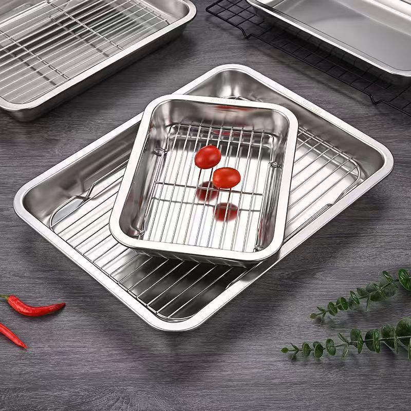 ステンレス角盤ネット付きオイルラック業務用トレー濾過水濾過油盤熟食展示盤バーベキュー撒料皿