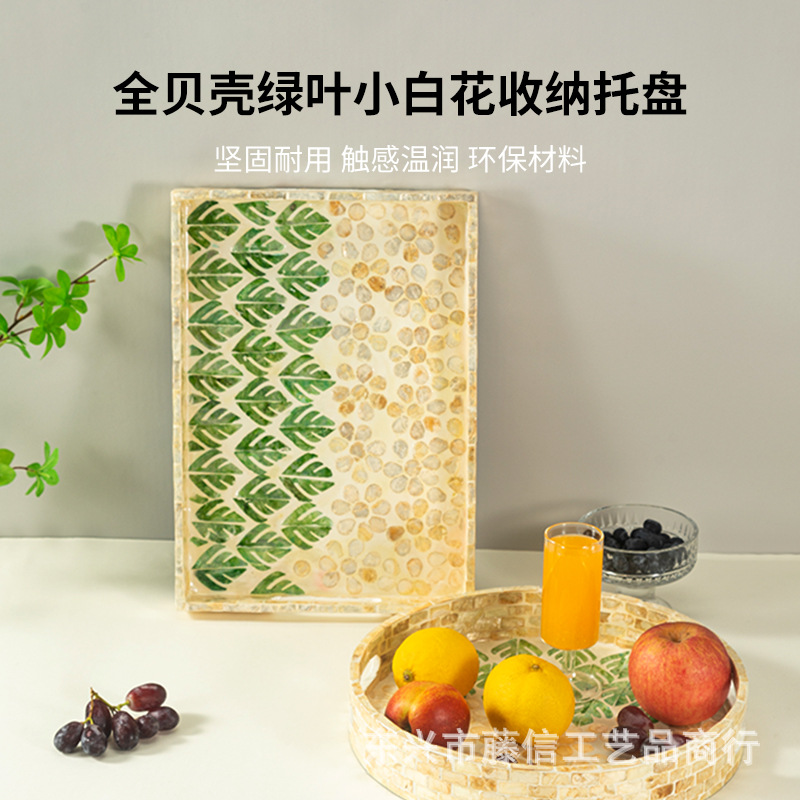 長方形のシェル象嵌ラウンドホームベッドルームリビングルームケーキコーヒーレストラン収納トレイ手作り