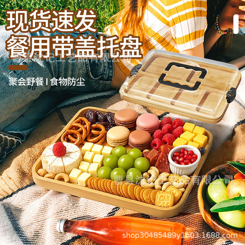 蓋付き木製デリトレイ、スナック朝食トレイ、スナックチーズステーキピクニック透明蓋トレイ