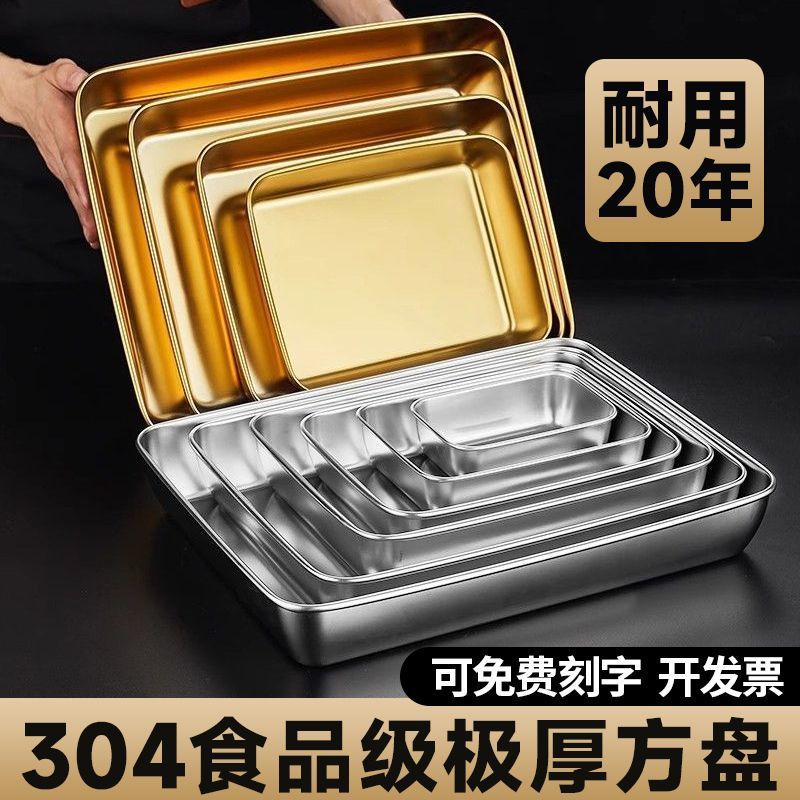304 ステンレス鋼トレイ平底正方形プレートキッチンディナープレート商業増粘蒸しライスプレート焼き魚プレートバーベキュープレート