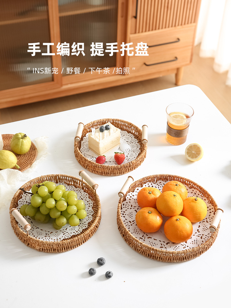 クリエイティブ軽贅沢ins風トレイ商用両耳食事用トレイリビングルーム寝室浴室プノンペン収納トレイ付き