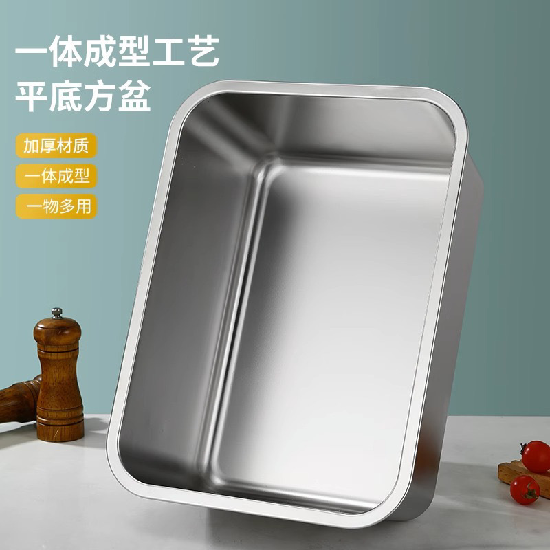 ステンレスの四角い鉢の長方形の角皿のバイキングの数鉢の蒸し器のトレーのファーストフードの野菜鉢の猫の砂鉢の植木鉢