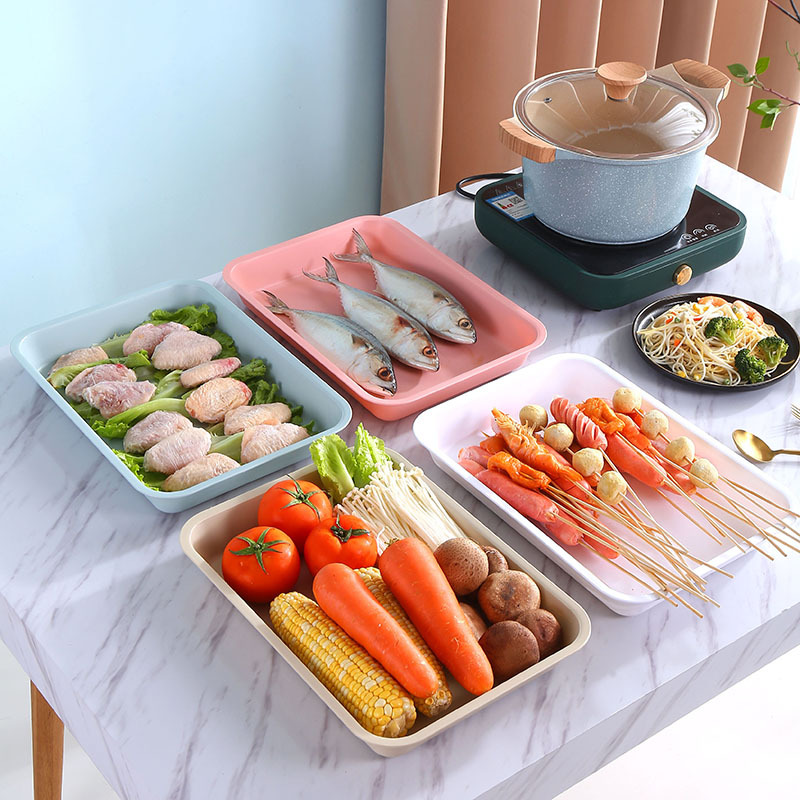 プラスチックトレイ小麦わら商用学校食堂ファストフード皿長方形トレイ茶皿ハンドル料理トレイ
