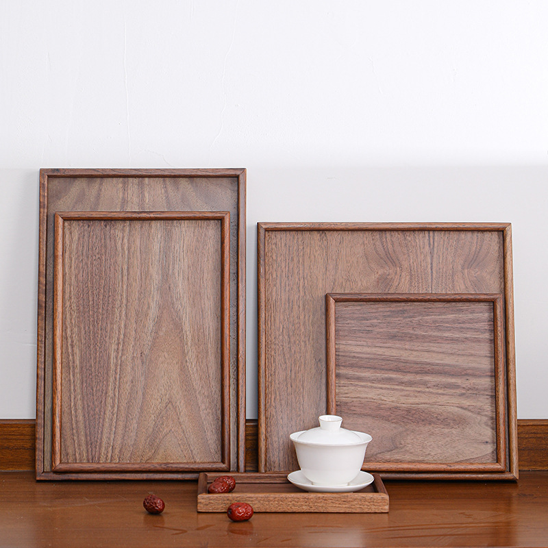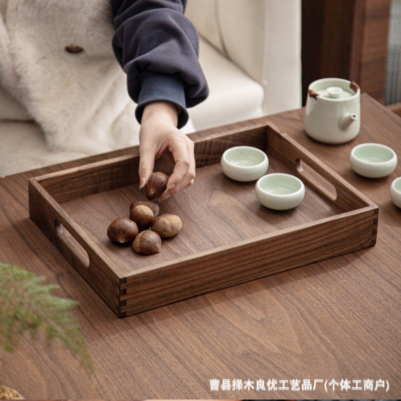 黒胡桃木手提げ皿家庭用木製皿角型トレー中国式ティーカップ茶皿喜糖果皿