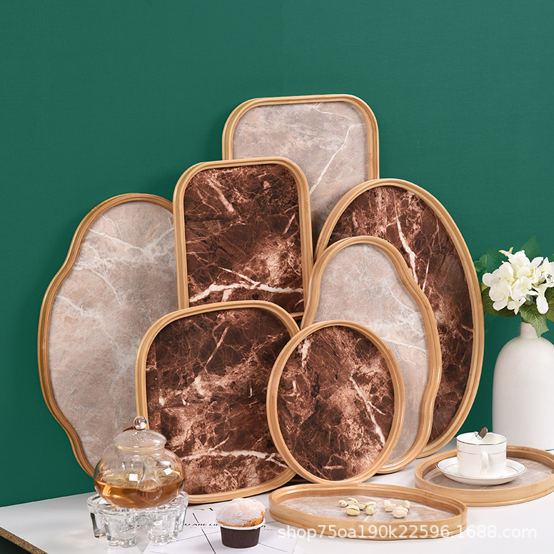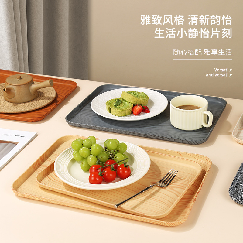 国境を越えて木目PPトレイ中国式茶盤茶卓果物皿カップ間食用収納皿