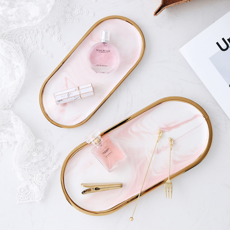 大理石模様陶磁器収納盤楕円収納皿トイレ洗面トレーアクセサリーアクセサリー香薫トレー