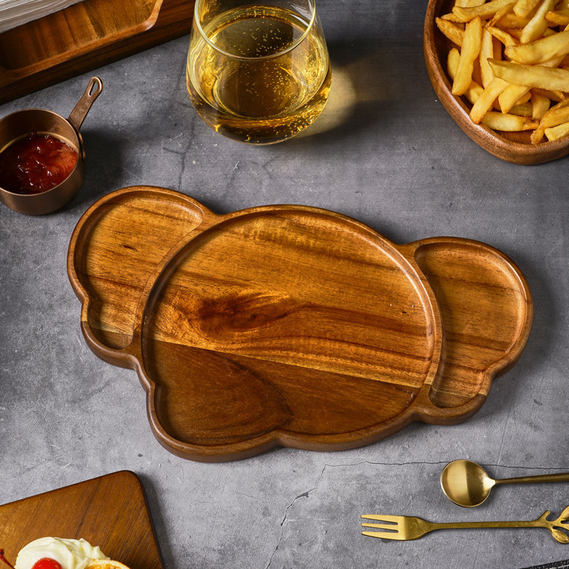 大葉アカシア木象トレー創意図案北欧木製家庭用皿和式食事皿果物菓子