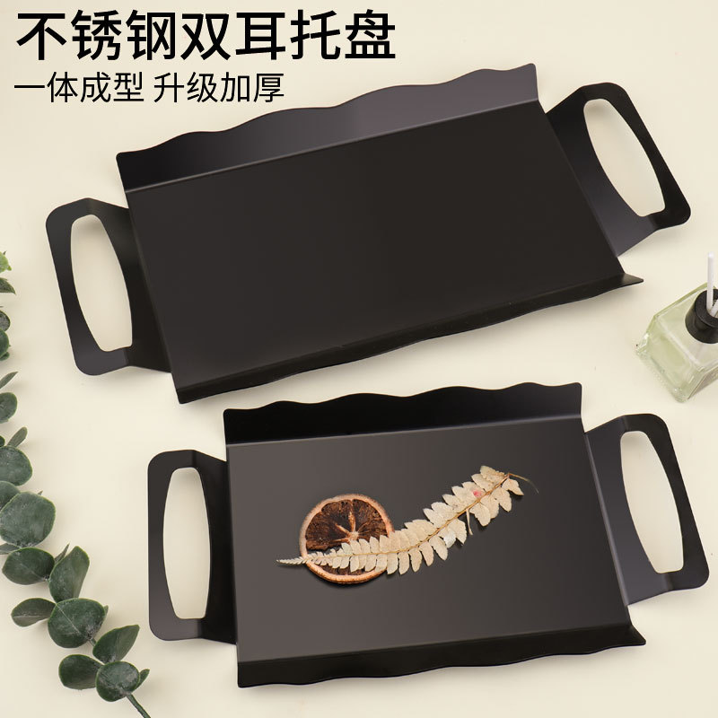 ステンレス製の耳付き食器トレイ、ダブルイヤートレイ、アフタヌーンティー、スナックトレイ、フルーツ、焼き菓子、食品収納トレイ