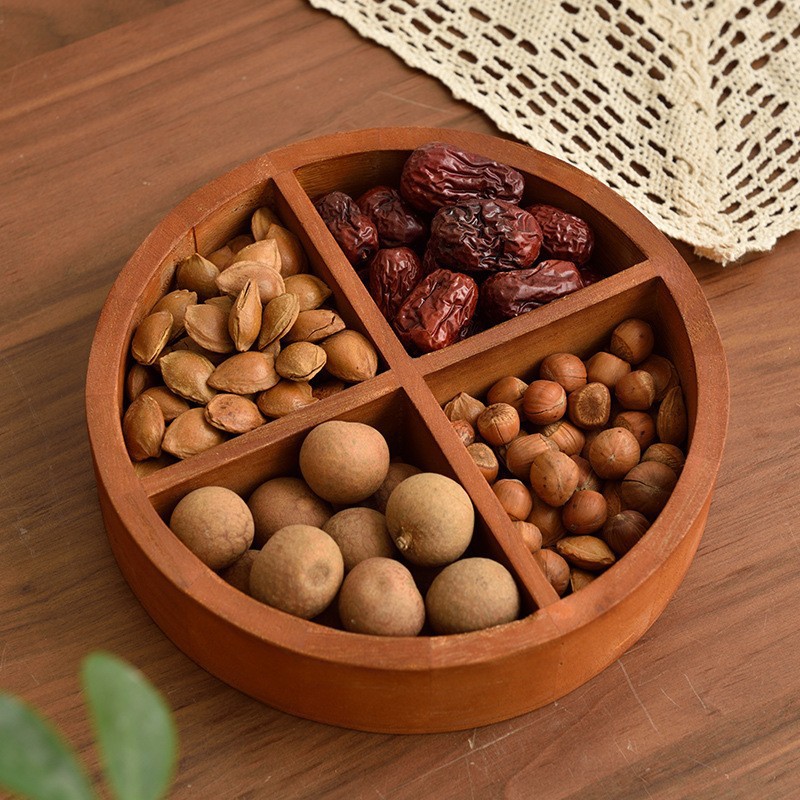 日本式の実木のドライフルーツの皿の家庭用の客間は格のお茶のいくつかの創意のお菓子のキャンディーの箱の化粧品のアクセサリーの収納箱を分けます。