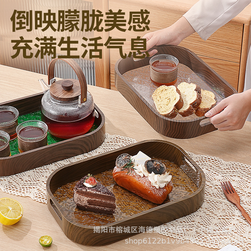 長方形トレイ、インスタイル、リビングルーム用、家庭用、ティーカップ、ウォーターカップ、ティートレイ、軽奢、軽食、フルーツ、食器、水波模様