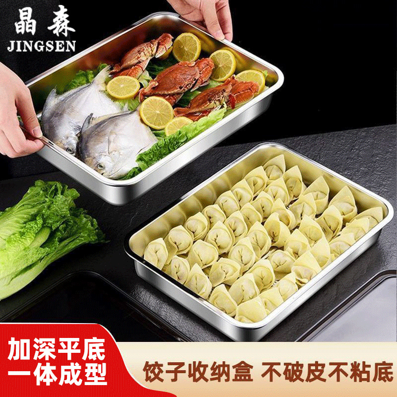 ステンレス角皿家庭用商用バーベキュー皿トレー鉄皿長方形特厚餃子皿深蒸盛