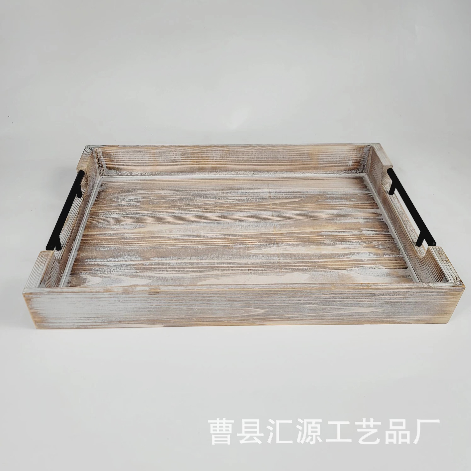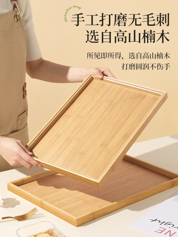 家庭用商用二耳竹木果物皿ヨーロッパ式大メニュー長方形月子足付き木製茶トレー
