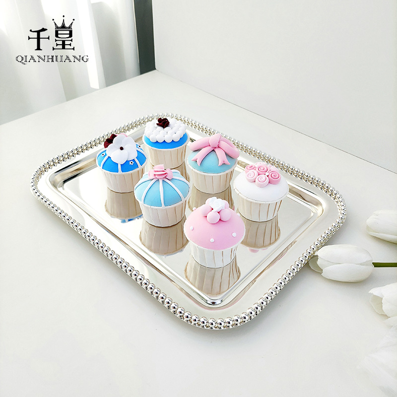 軽くて豪華でシンプルなinsの四角いケーキの皿の結婚祝いの金属の銀のデザートの台のトレーのお菓子の午後のお茶の果物の皿