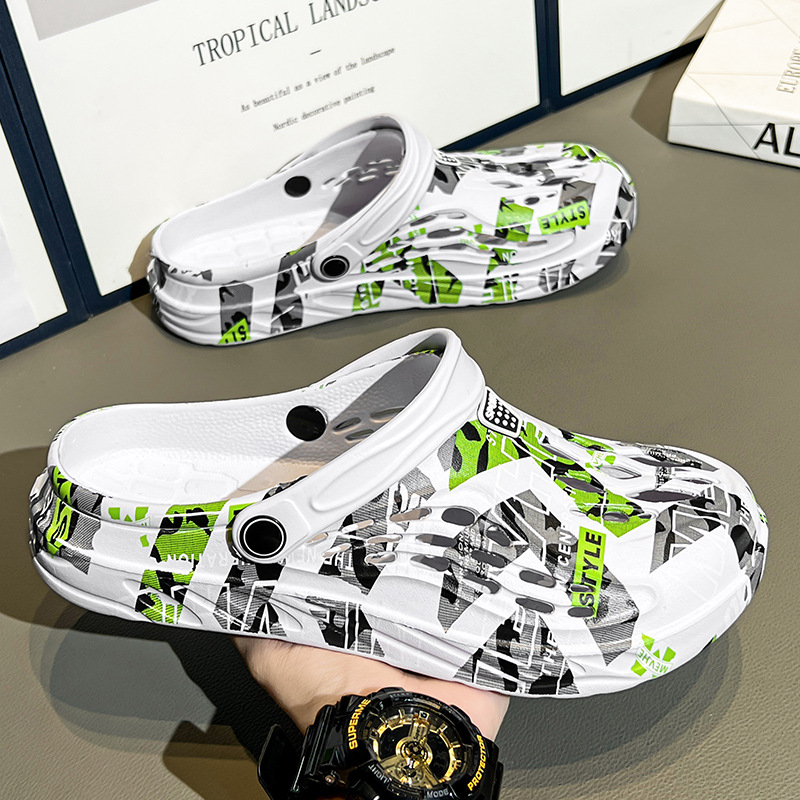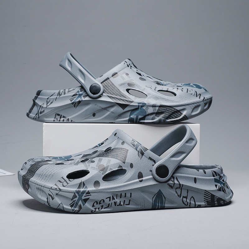 男性の穴の靴のファッションの街頭の芸術の2024の新型の夏の外は潮のクールな屋外の冷たいスリッパの運動を着ます。