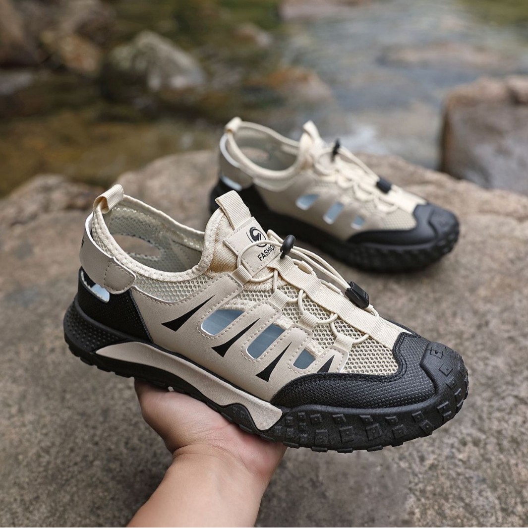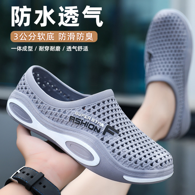 洞靴男性通気ネット靴2025新型滑り止め防臭屋外ビーチ靴包頭男靴カジュアルサンダル