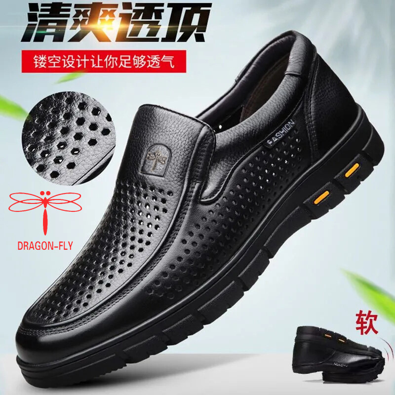 男性靴のトップの牛革の穴の靴の中で高齢のお父さんの靴の夏の透かし彫りの柔らかい面のゴムの底の靴の男性