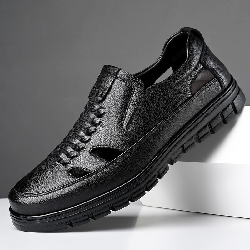 2023革サンダル男性真皮夏の新型トップ牛革男性サンダル靴抜き通気性男性靴滑り止め