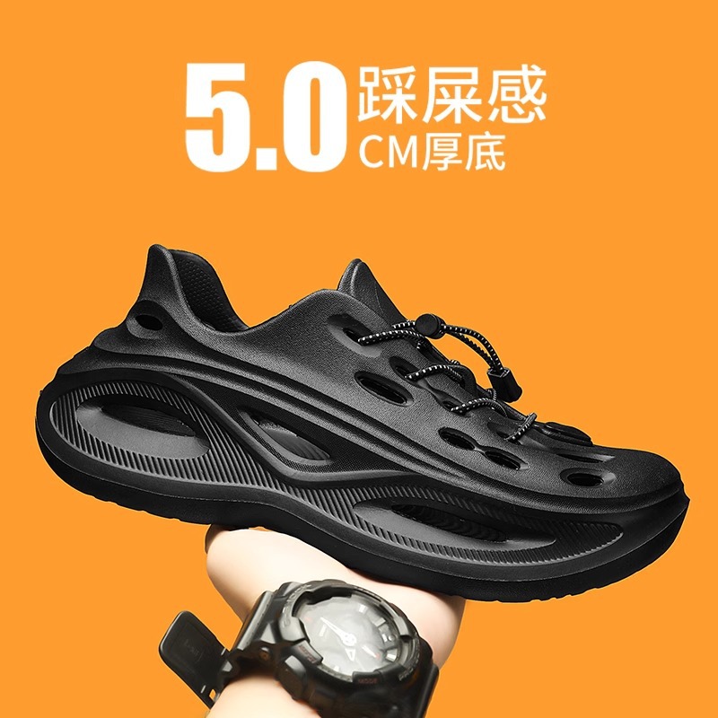 穴の靴の男性の厚い底の2025の新型の夏の家は滑り止めが高くなります。