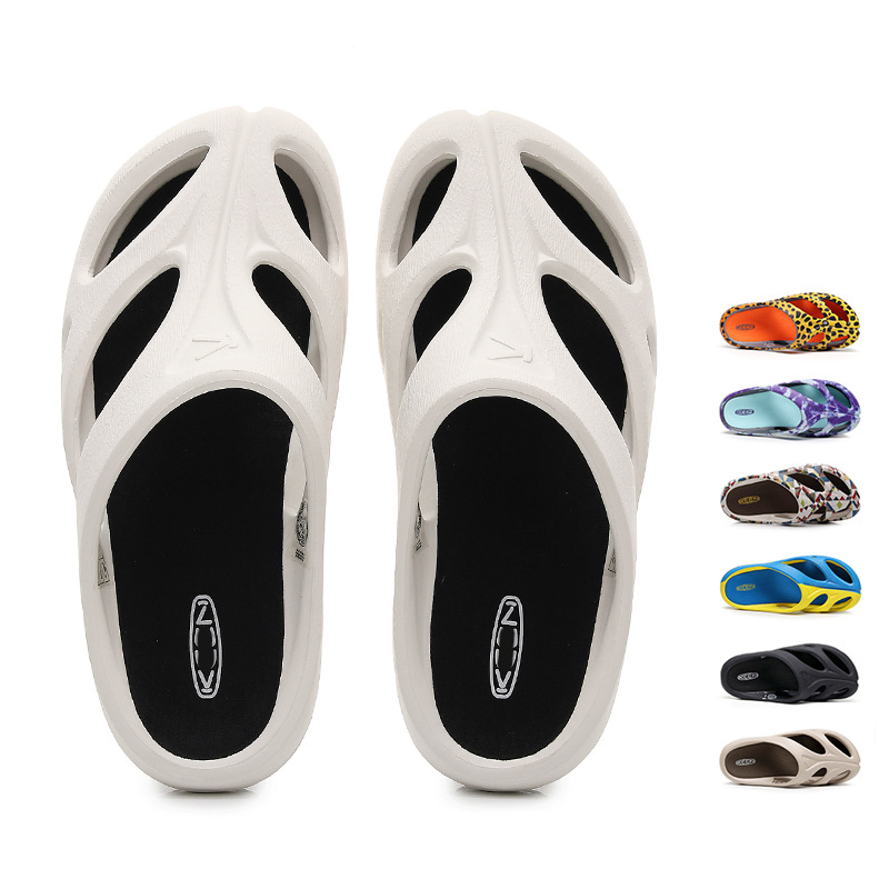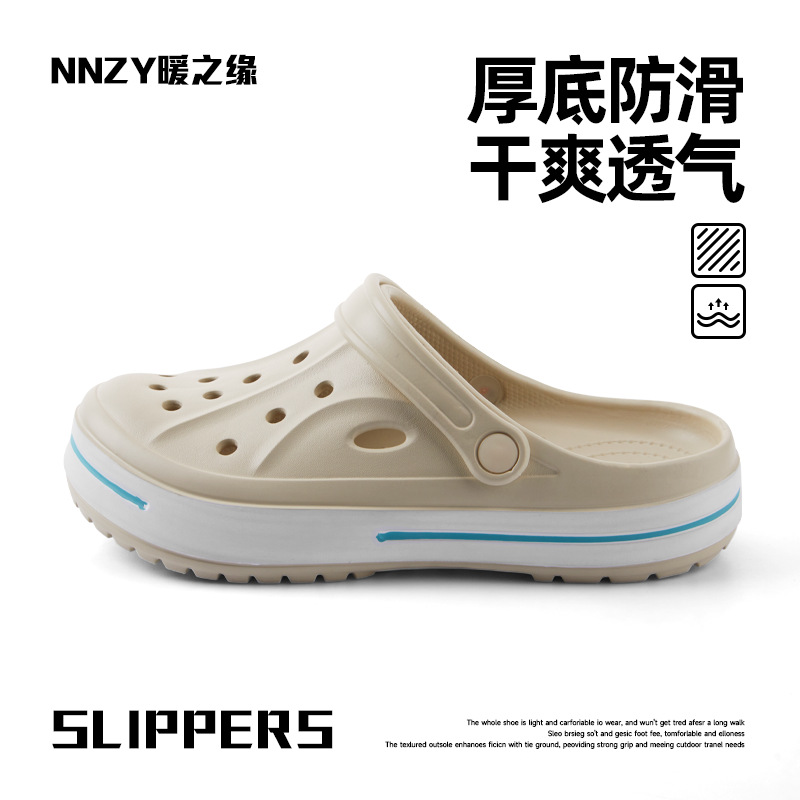 厚い底の穴の靴の男性のタイプの夏の外は2024の新型の屋外を着て糞感のビーチの靴の滑り止めの冷たいスリッパの女性を踏みます。