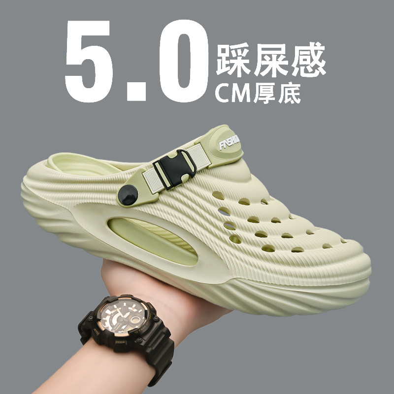 穴の靴の男の2024春夏の新型の柔らかい底は糞感の包頭のスリッパの事務室の滑り止めの運動の砂浜のサンダルを踏みます。