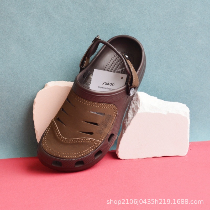 跨境优肯洞洞鞋男夏季包头凉鞋防滑牛皮大码厚底户外拖鞋沙滩鞋男