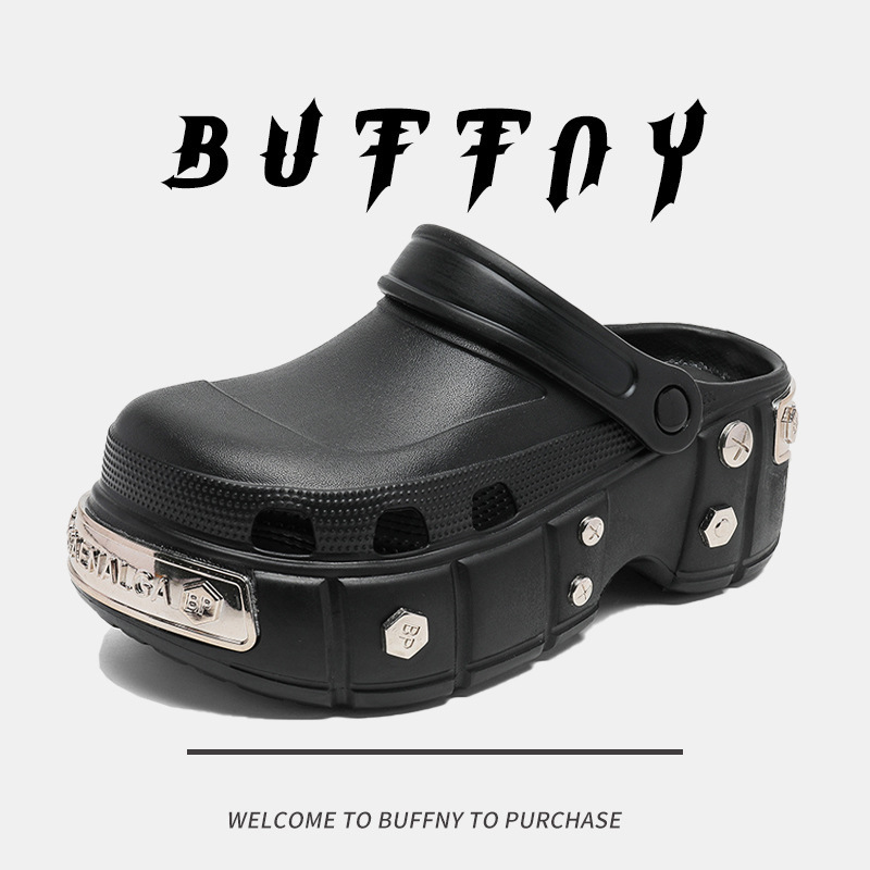 パリ下駄 2025 新しい厚底リベットサンダルイントレンディなインターネットセレブメタルトレンド包頭スリッパ