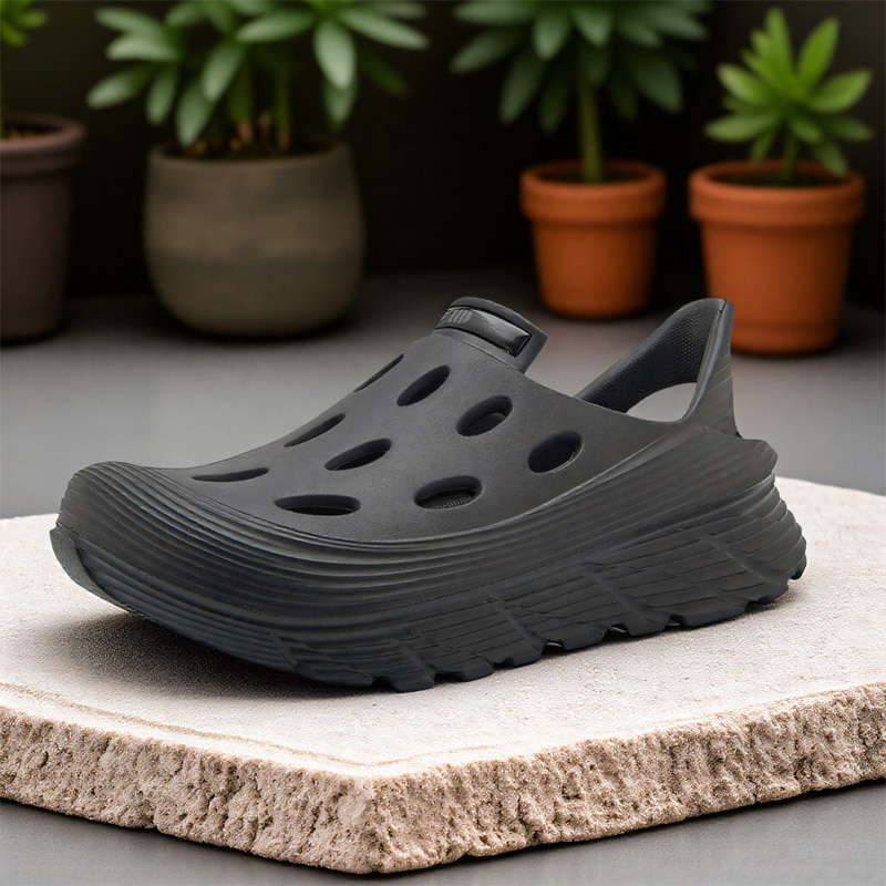2025EVAメンズ穴あきシューズ、トレンドカラーのホーム&アウトドア兼用、浴室用防臭、つま先が覆われたサンダル、通気性のある厚底