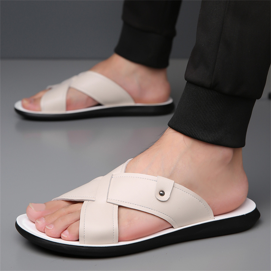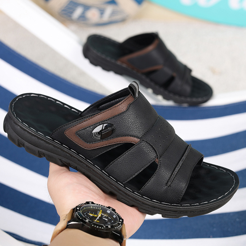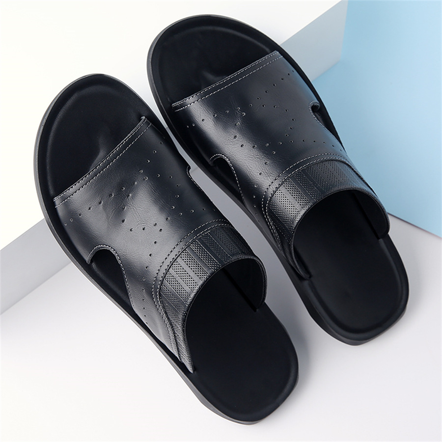 クロスボーダーサンダルメンズ夏 2025 新しい本革カジュアルビーチシューズサンダルお父さんソフトソール兼用スリッパ