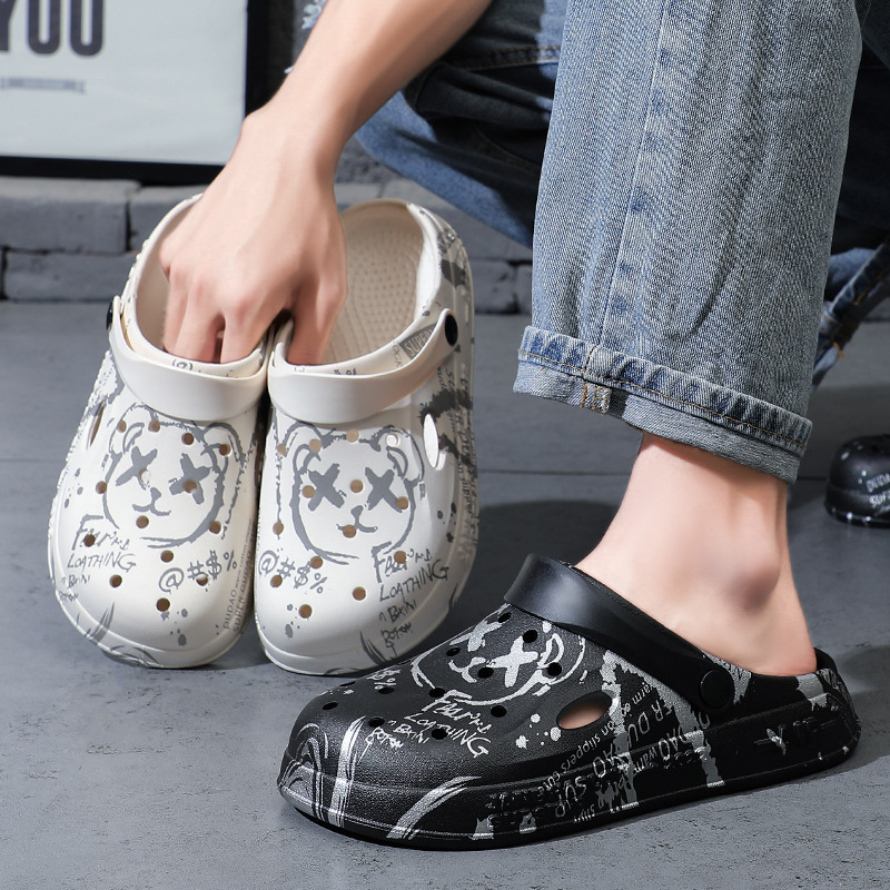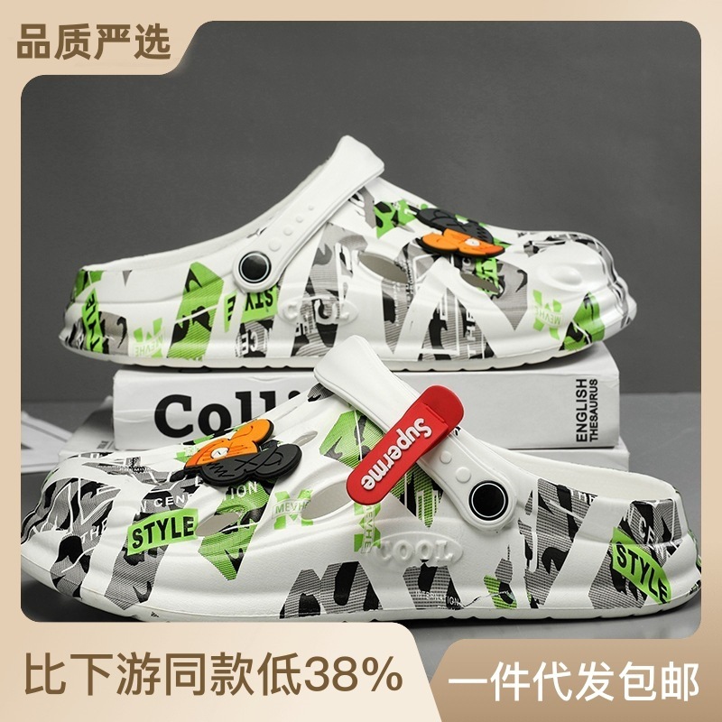 男性用クロックス、2025年夏の新しいスタイル、カップル向けの柔らかい底のつま先スリッパ、女性向けの多用途ビーチサンダル
