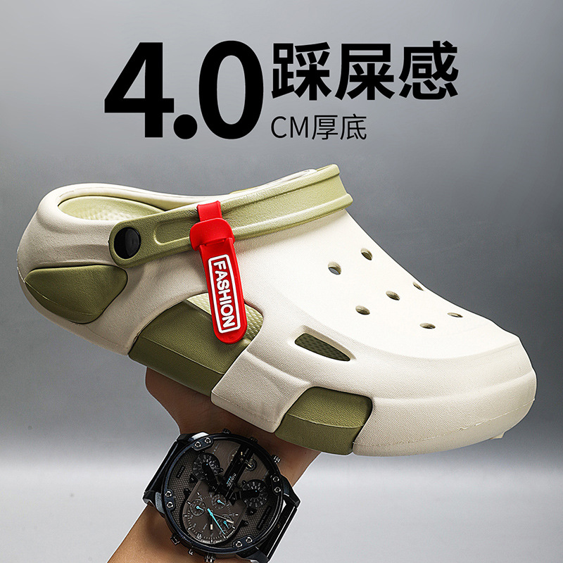 厚い底の穴の靴の男性の夏は高くなって耐摩耗性の滑り止めの包みは外を引きずって砂浜を着て臭くありません。
