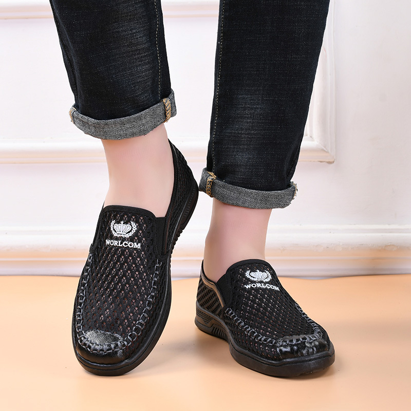 ネット靴男2025夏の新型本革ネット布通気穴靴運転アウトドアレジャー靴ビーチ靴